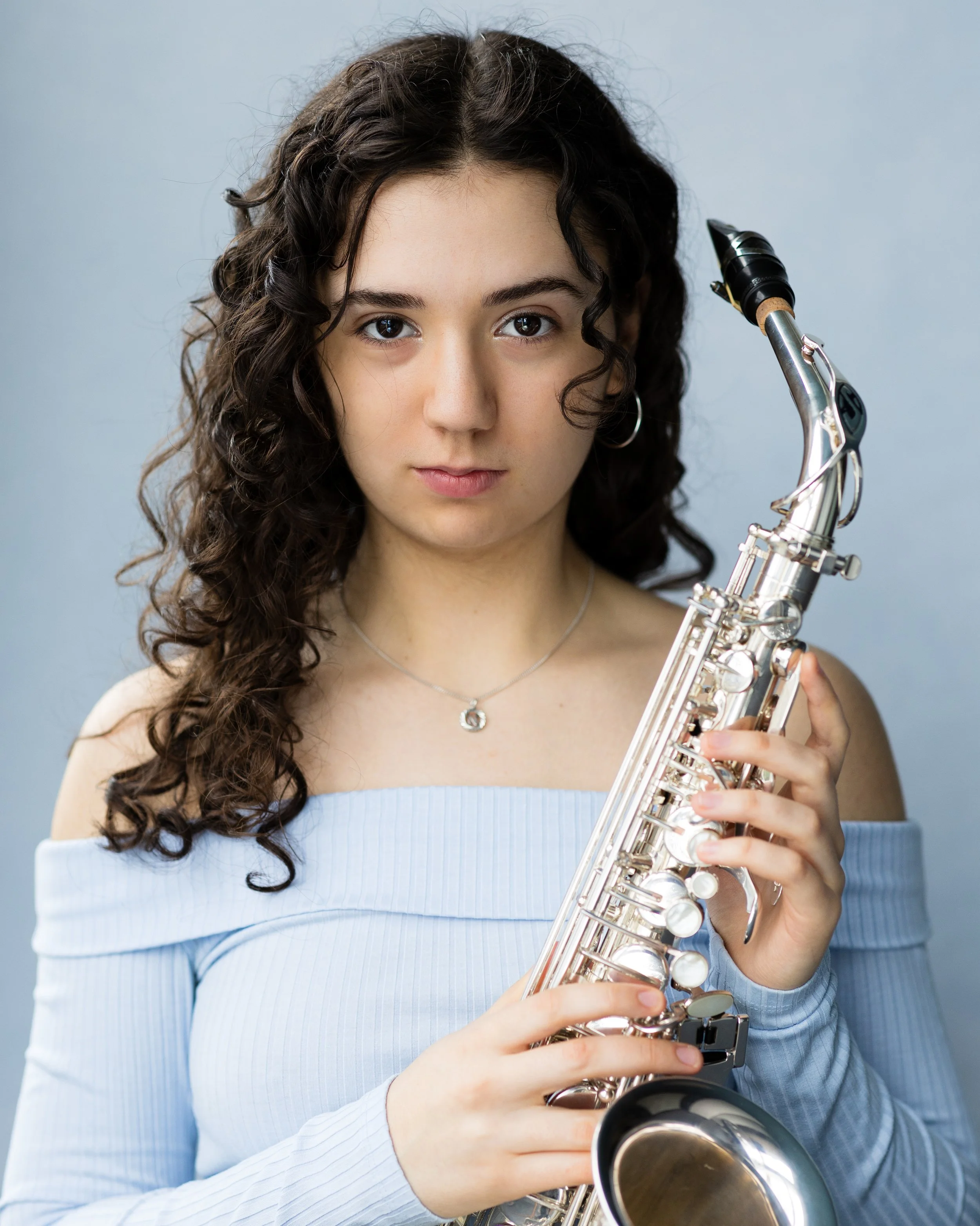 Nina Martin (2004) is an award-winning composer, saxophonist and climate activist - winner of the National Youth Brass Band of Great Britain Young Composer’s Competition 2024/25 and the Howarth of London Single Reed Prize 2025.